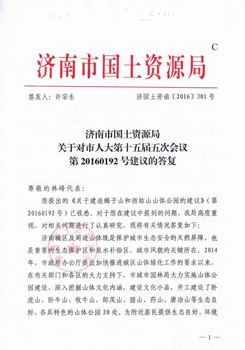 關于轉發濟南市國土資源局對我公司市人大代表的答復